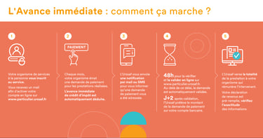 L'avance immédiate est un service optionnel et gratuit mis en place par l'Urssaf et la Direction générale des Finances publiques qui permet la déduction immédiate de votre crédit d’impôt de 50% lors du paiement de votre facture à votre organisme prestataire de services.